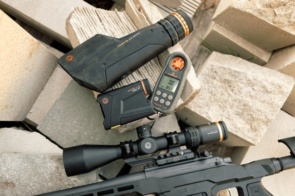 The Horus HoVR™ Complete Shooter Package includes the HoVR™ 5-20×50mm Riflescope, HoVR™ 1.0 Weather Meter, and HoVR™ 2.0 2000 BT Laser Range Finder, paired with the free Horus Ballistics App. This complete package delivers affordable precision, extended range, and unmatched accuracy with the Horus reticle system.